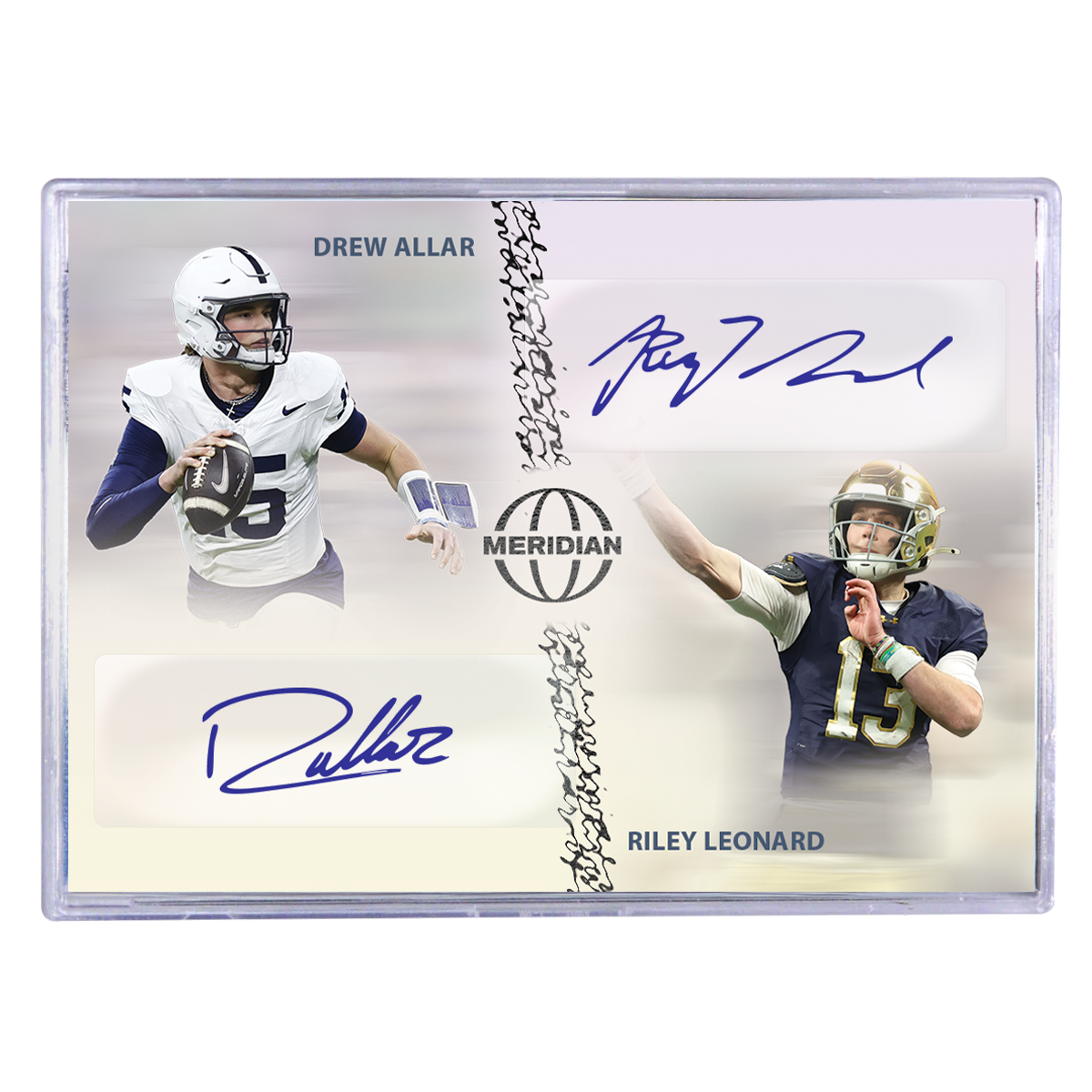 The 2025 Pulse Meridian Football series is where the future of football meets the game’s greatest icons. Each box delivers 6 premium cards, including 4 autographs, with every card numbered to 50 or less and encased in a jewel case.
