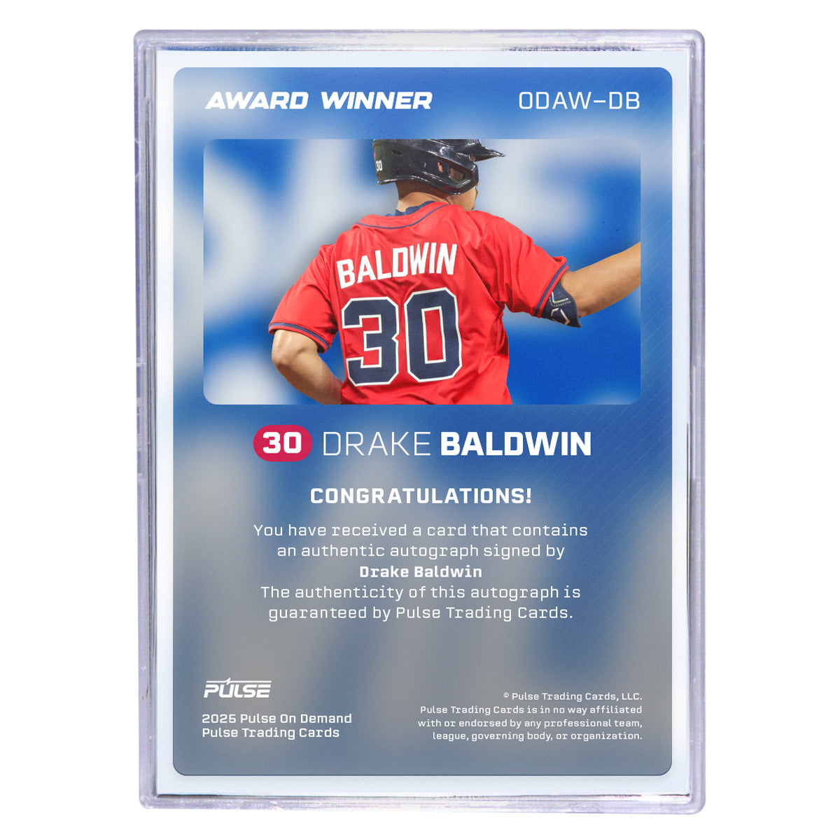 2025 Pulse On Demand Drake Baldwin Autographed Award Winner Card