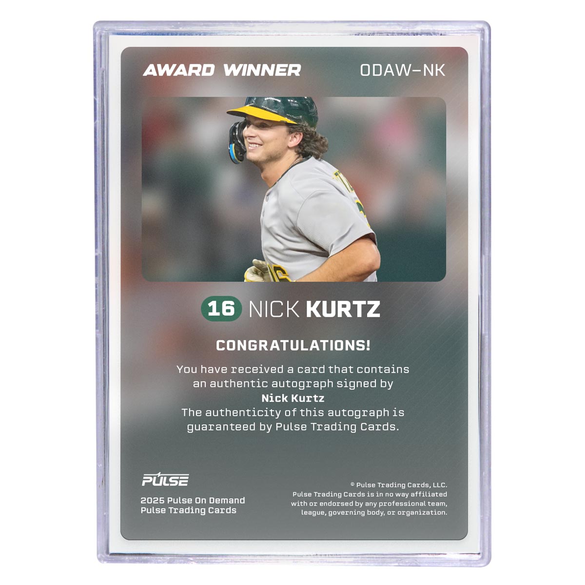2025 Pulse On Demand Nick Kurtz Autographed Award Winner Card