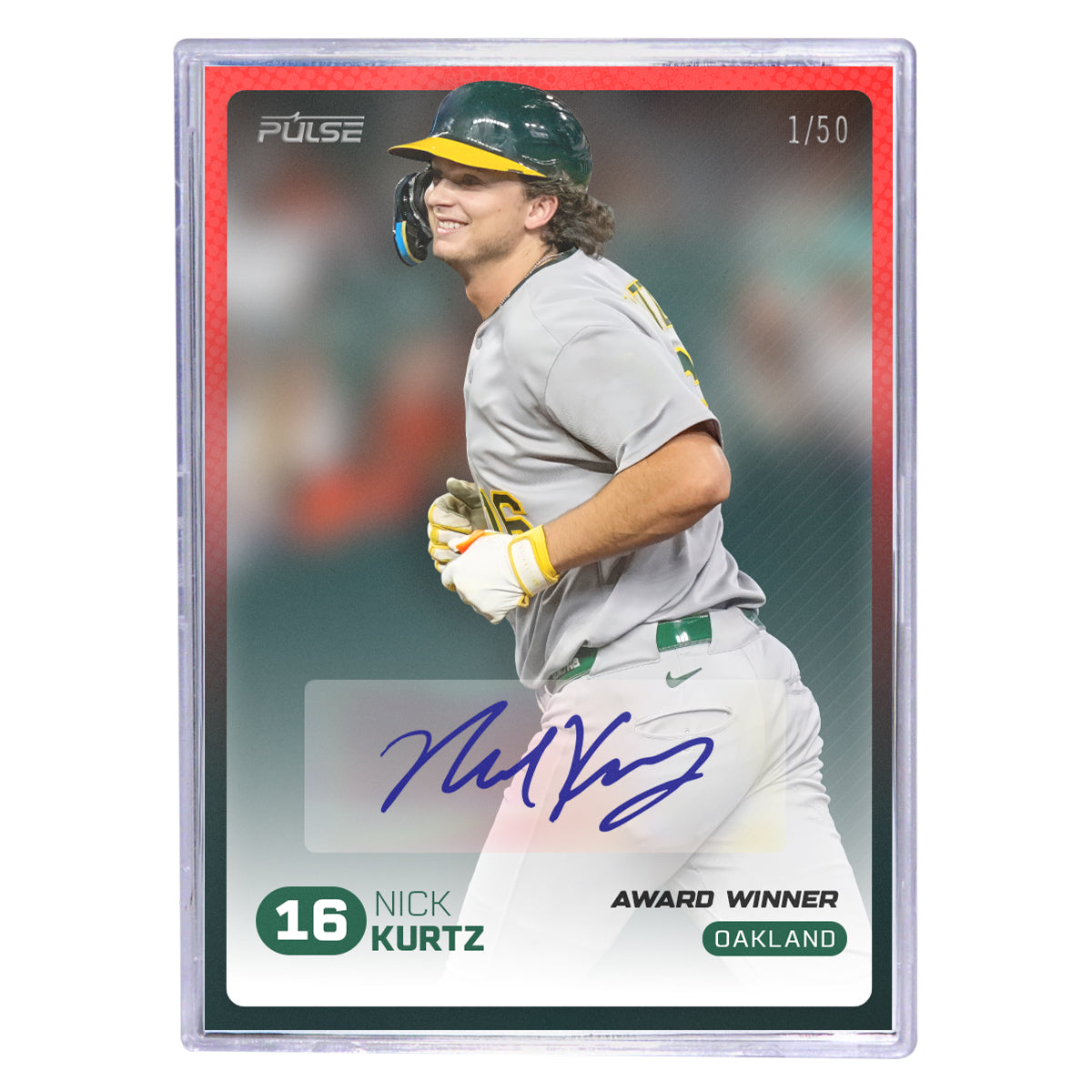 Commemorate Nick Kurtz being the 2025 AL Rookie of the Year with this exclusive 2025 Pulse On Demand Nick Kurtz Award Winner Card.