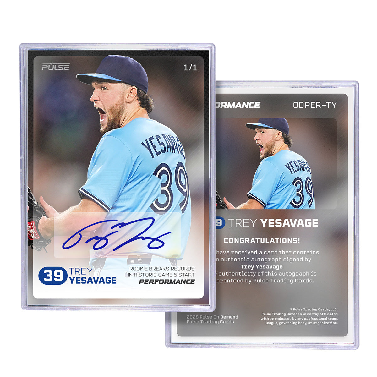Commemorate Trey Yesavage’s record-setting performance in Game 5 with this exclusive 2025 Pulse On Demand Trey Yesavage Performance Card.